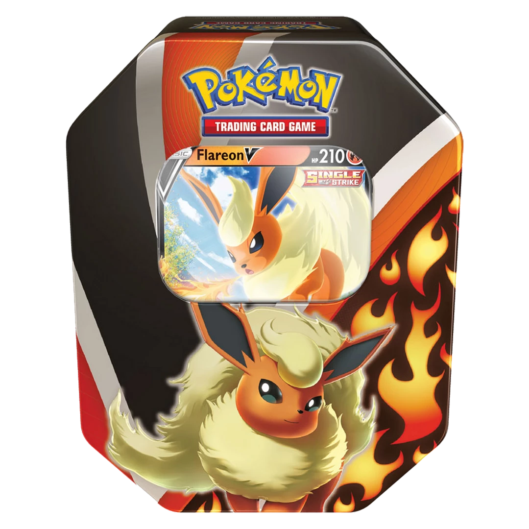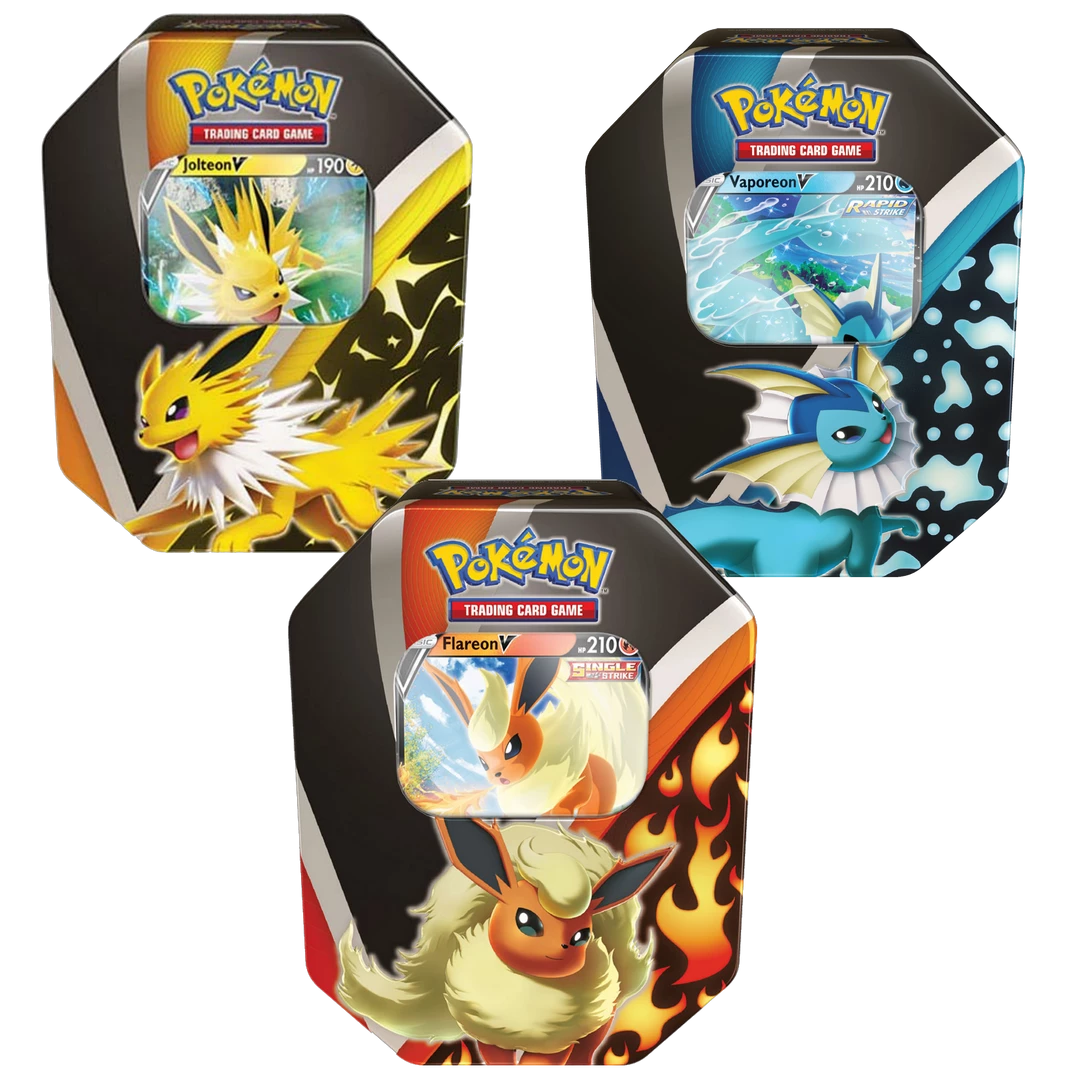 Your Pokémon Trading Card Game collection is about to level up with Eevee’s original Evolutions. The new Eevee Evolutions Tins feature the Water-type Vaporeon V, whose Triple Draw attack can quickly get cards into your hand and whose Splash Jump will damage your opponent’s Pokémon while allowing you to swamp in another Pokémon from your Bench. There’s also the electrifying energy of the Lighting-type Jolteon V, with its Pin Missile attack that is capable of causing up to 240 damage. The third tin includes the Fire-type Flareon V, whose Scorching Column attack not only does damage but leaves its target Burned. In addition to these incredible (and adorable) Pokémon V, each colorful tin also includes four Pokémon TCG booster packs to bolster your deck.