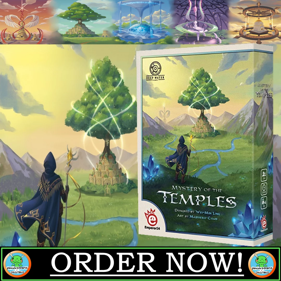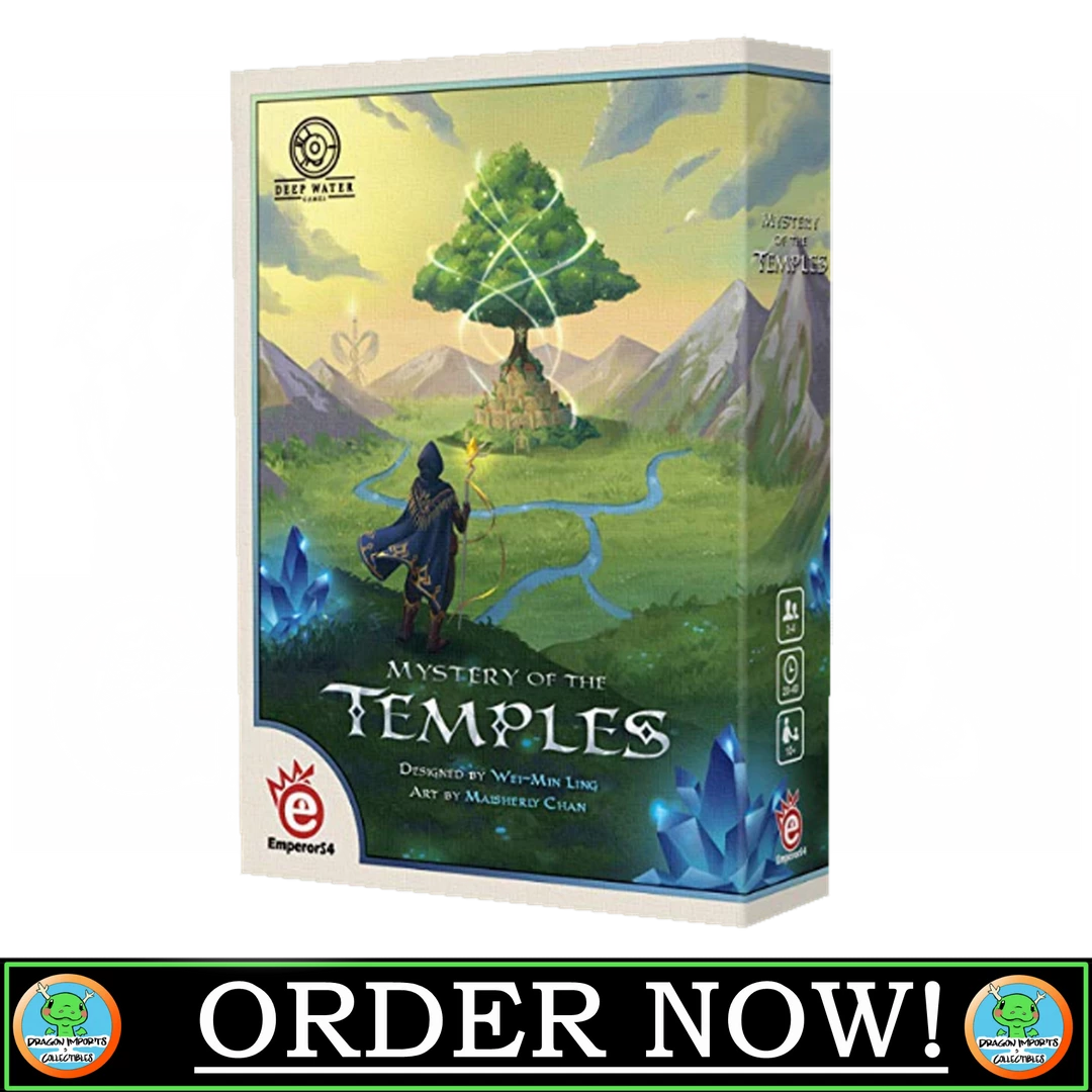 In Mystery of the Temples, players take on the role of Curse Breakers, traveling between the wilderness and the temples in order to collect crystals of various colors. Fusing the colorful crystals on the Crystal Grid in the correct order breaks the curse of the temple, and you earn runes and victory points in the process. Once a player has broken five curses, the game ends. Whoever has the highest amount of victory points wins.