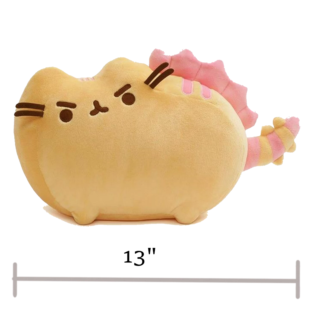 - PLUSH KITTY + DINOSAUR: This super soft & adorable banana yellow Pusheenosaurus has a spiked tail and pink mane. 13` signature pose is perfect for the Pusheen collector and fans of adorable dinos!